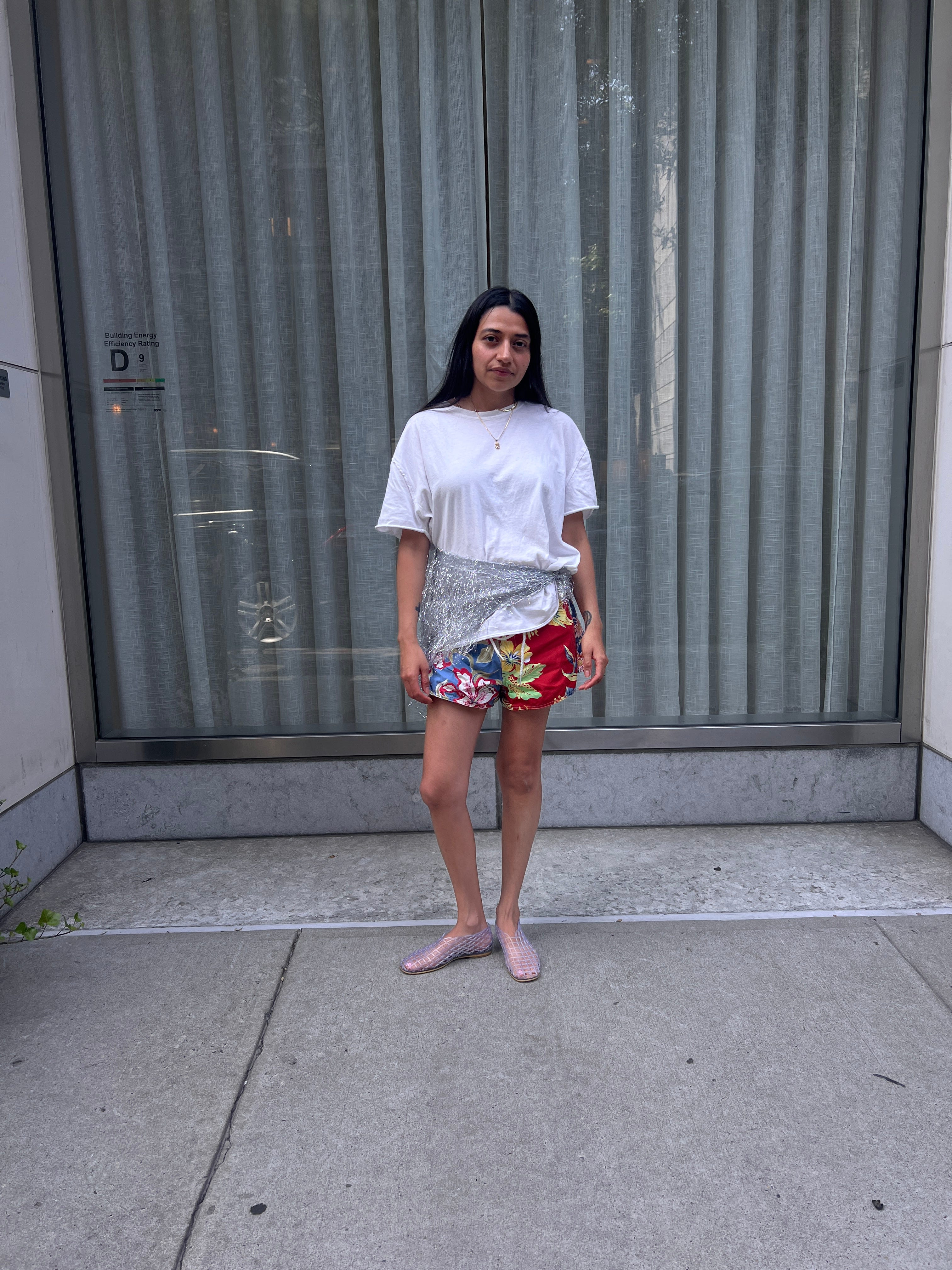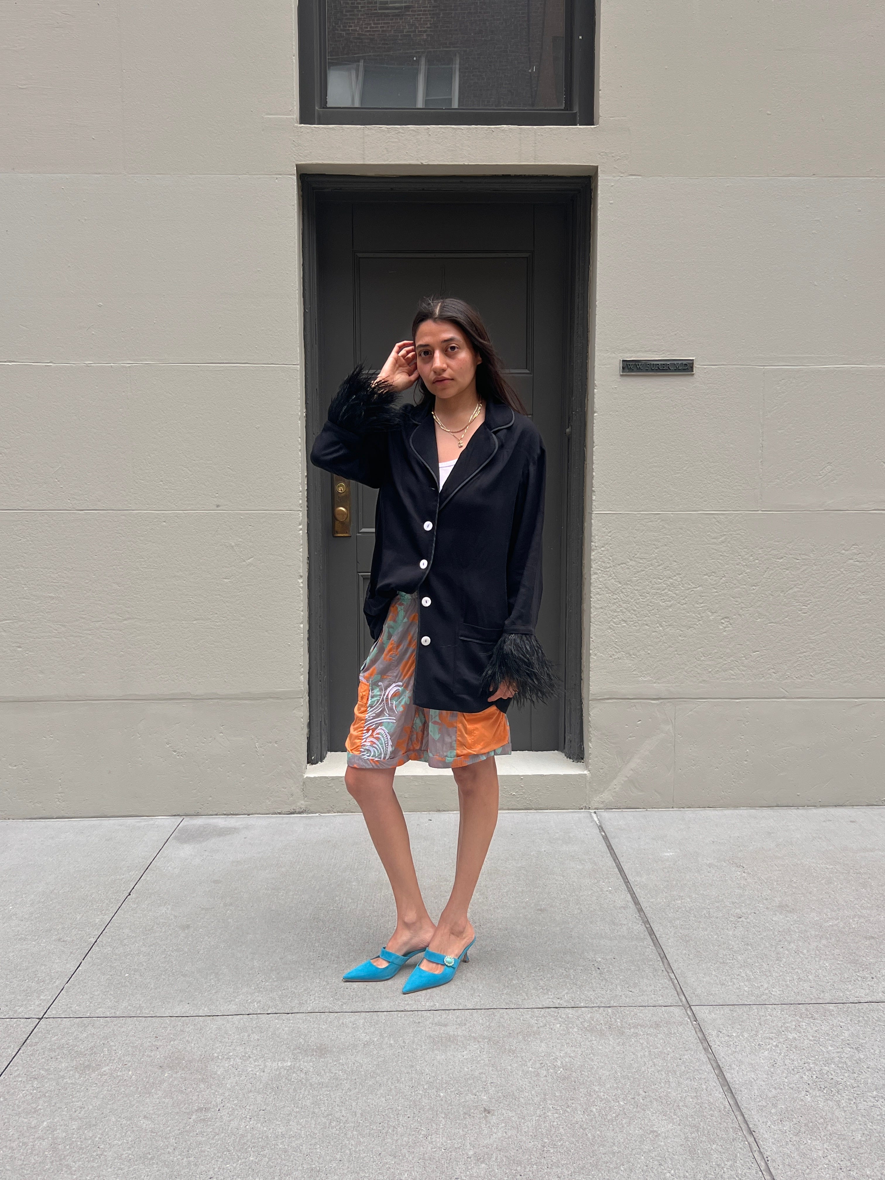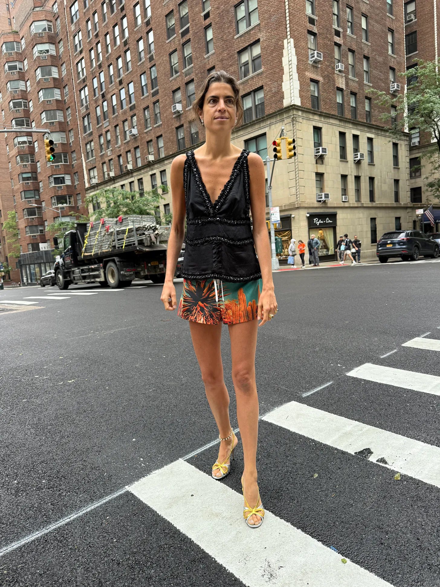 “To me board shorts represent an ease that any other material can’t. They’re practical, easy, comfortable, and I usually find them in a great floral print that is hard to be represented in other fabrications. I have found pairing them with unlikely textures is the best, but also love them with a great cotton t-shirt. That’s the beauty of them, I can be at the playground with my toddlers, then run to a dinner by throwing on a pair of heels! What a time to be alive! They’re a perfect contradicting element to anything, so that makes them great and that’s why I love them. Also, I can’t stop thinking about them since seeing them on our favorite style gurus—Julie Johnson, Laurel Pantin, and Leandra Medine Cohen.”