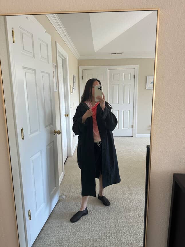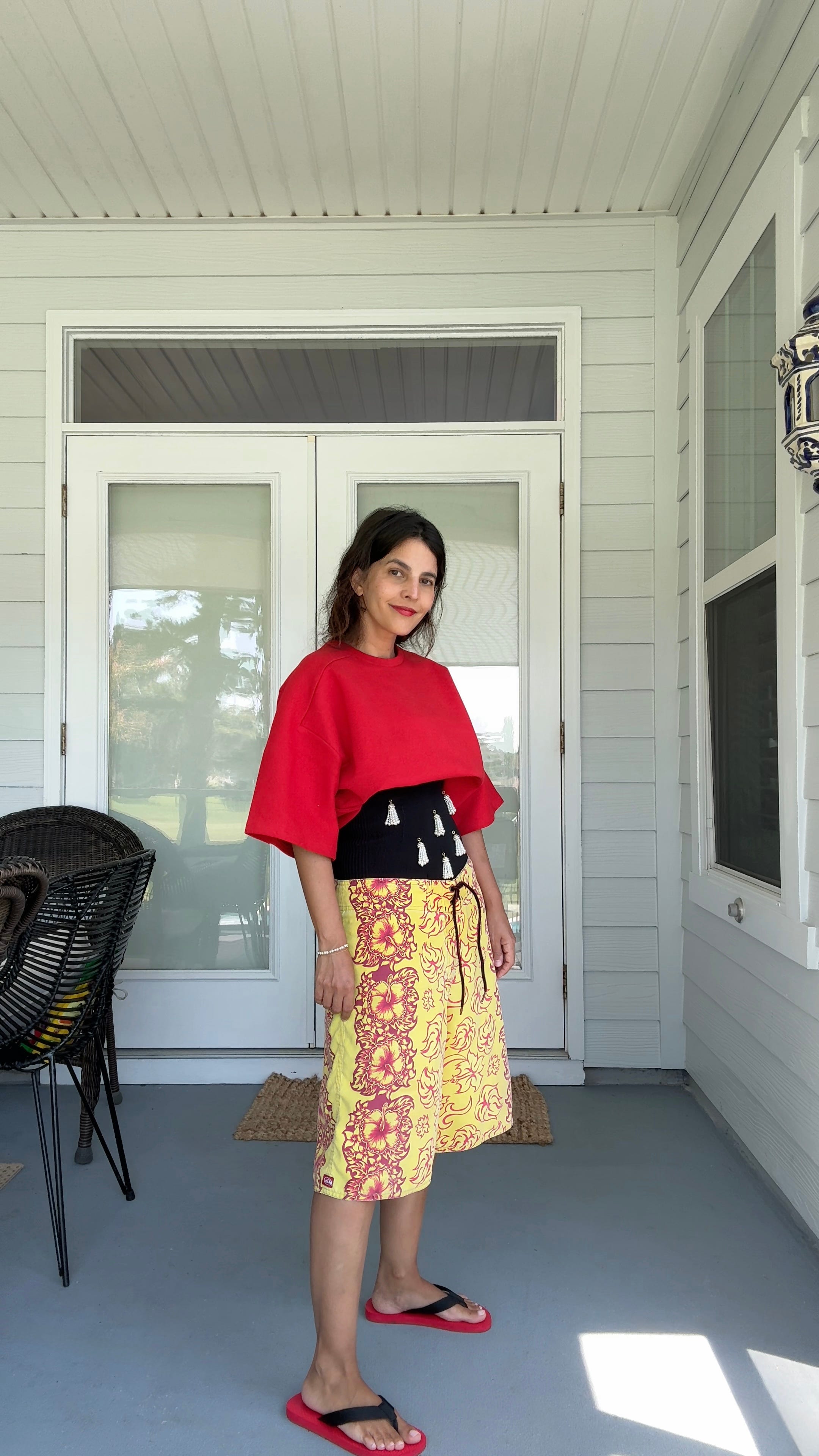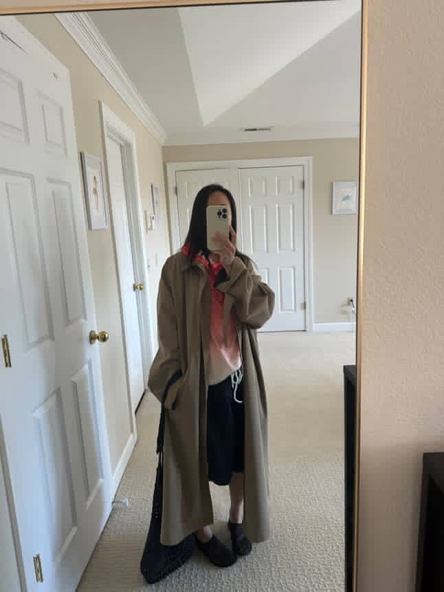 Now back in the Bay Area—where summer mornings arrive wrapped in fog—I’ve started styling my thrifted genuine board shorts (Brand: "Rusty" - the same ones Laura borrowed from her husband - thanks!) with oversized button-downs, my UV top, and a lightweight summer trench to avoid feeling too on-the-nose. I’m still experimenting, but they’ve already proven themselves a practical, playful, and surprisingly versatile addition to my wardrobe. They strike a joyful balance—bringing color and ease to a closet that often leans too serious. Because let's face it, fashion doesn't always have to be so serious.