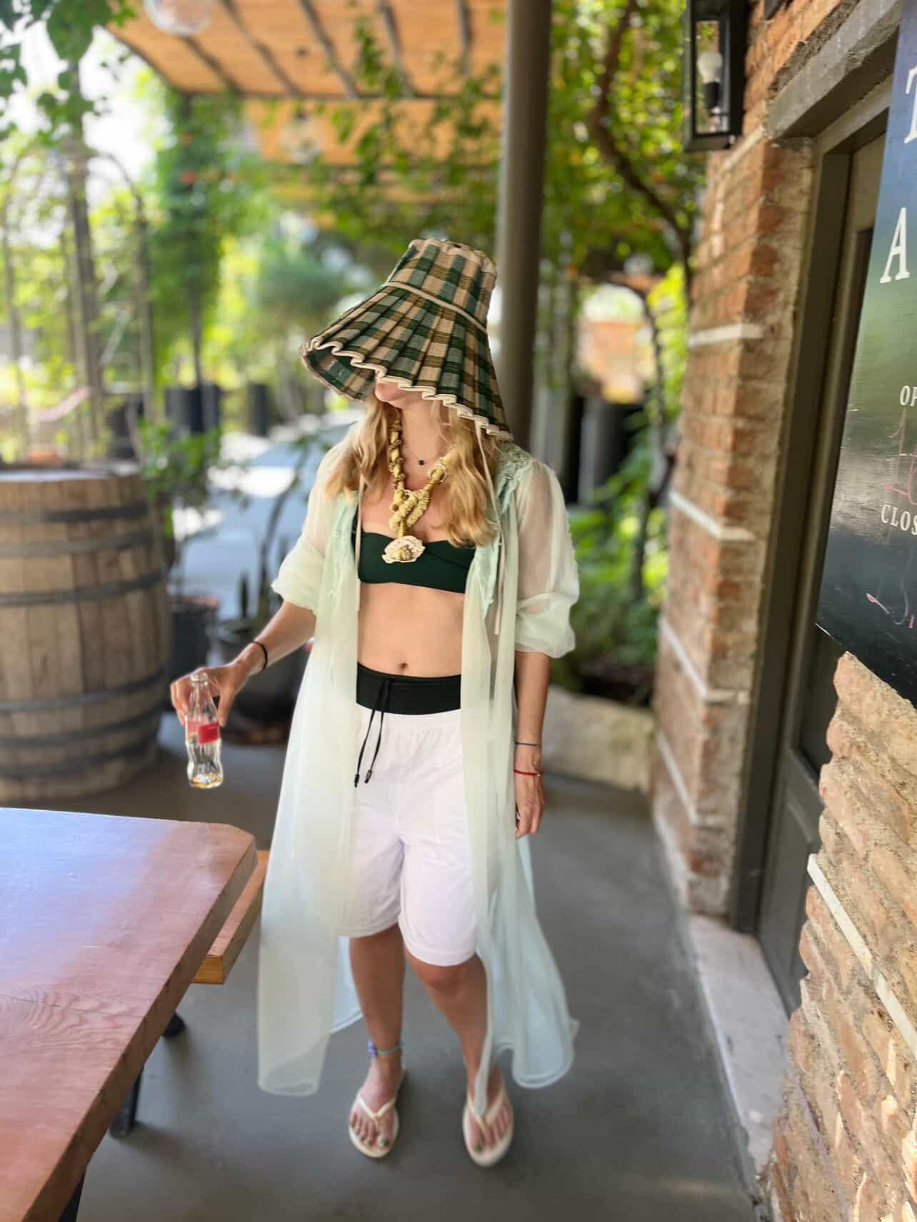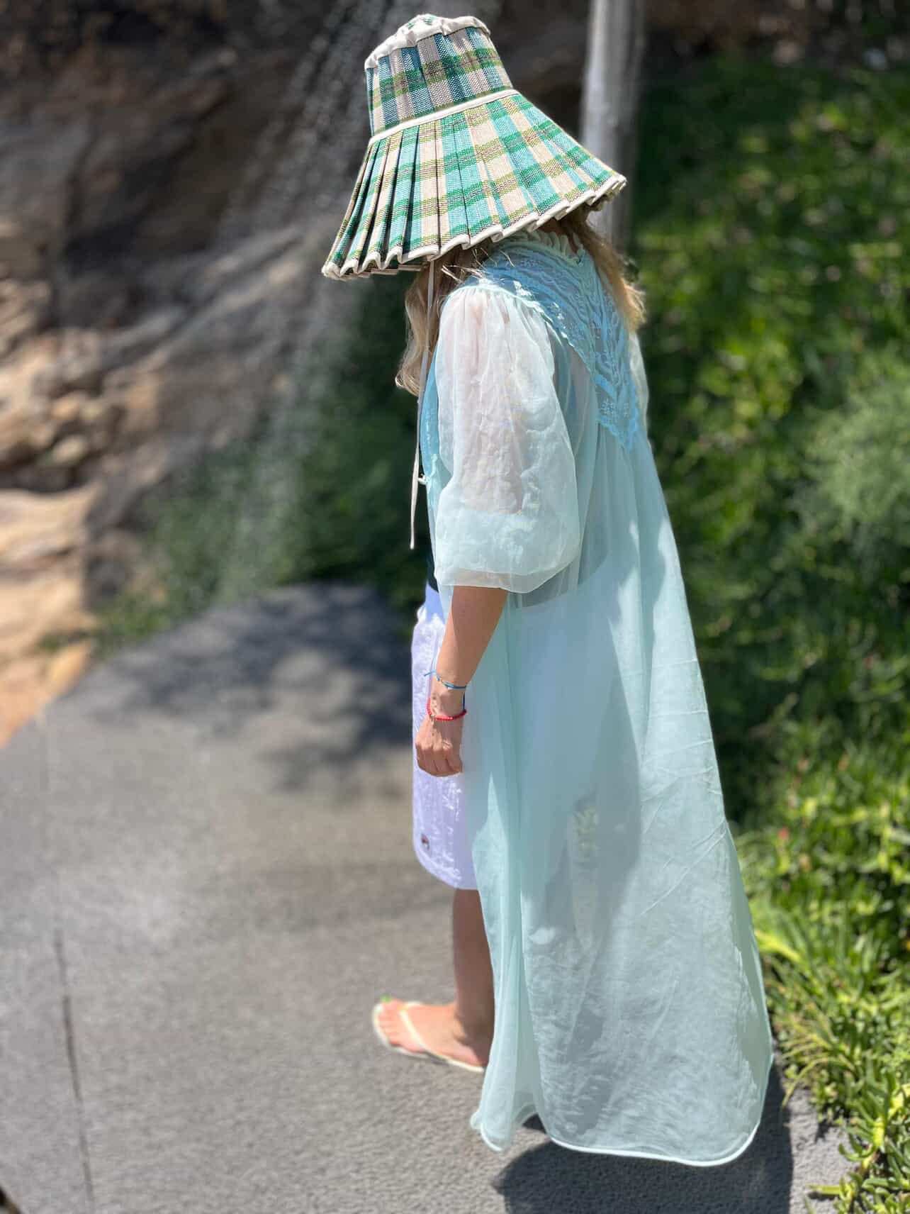 So I packed two of them for a short summer vacation of 4 days at a dreamy resort along the Aegean Coast and used recklessly day and night! One time I added my mom’s vintage organza night robe and a very unpractical hat for a casual stroll in the area during the day: