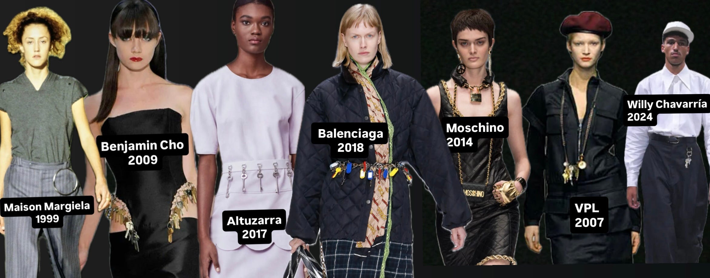 Soon after starting our project, we began noticing keys everywhere: Simone Rocha, Carven, Balenciaga, Micah Lexier, Marc Jacobs x Vaquera, Daniela Salcedo, those Gimaguas Havaianas, Michael Rider’s first Celine show, Calvin Klein, Paula Mendoza, Alighieri, Zara, Mango, H&M, our favorite substackers were wearing them too: Laurel Pantin, Irene Kim, Juliana Salazar….